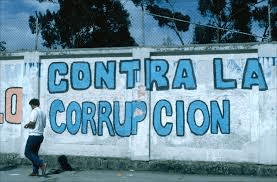 Anti-corruption graffiti along a concrete wall in Quito, Ecuador.