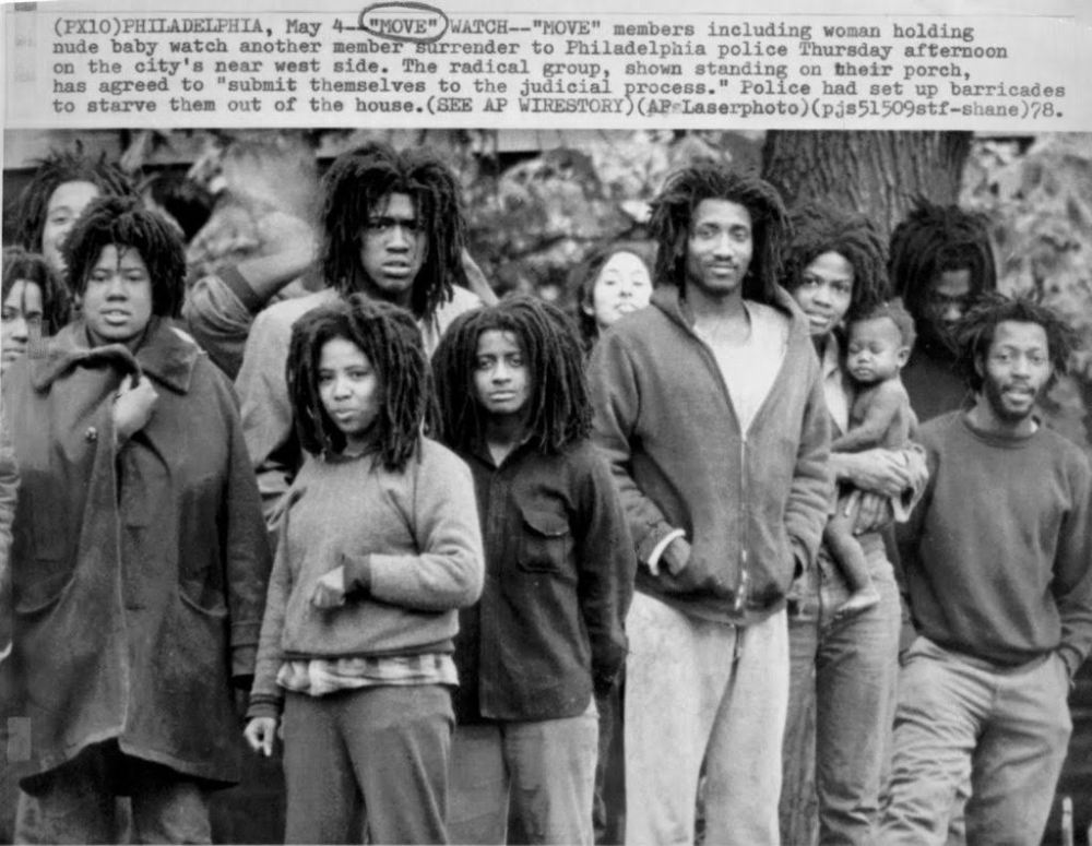 – Move is a Philadelphia-based Black liberation group that preached revolution and advocated the return to a natural lifestyle. They lived communally and vowed to lead a life uninterrupted by the government, police, or technology. They were passionate supporters of animal rights. Members adopted vegan diets and the surname “Africa.” Often times they would engage in public demonstrations related to issues they deemed important.
