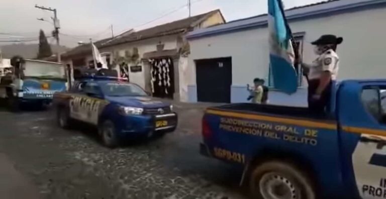 A video posted to social media showed a lineup of National Civil Police cars in the streets of Guatemala. An officer used a microphone so that quarantined residents can hear his message. He encourages them to believe in God who makes impossible things possible.