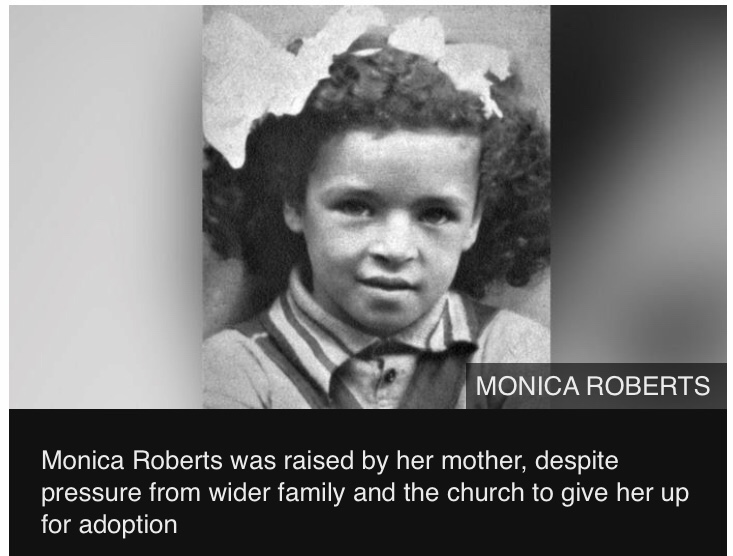 Monica Roberts was born in 1944 in Liverpool to a single mother who refused to give her up. She was told her skin was dark because she played outside.