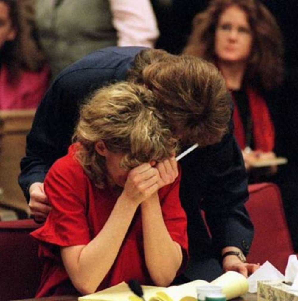 Letourneau puts her head in her hands during her re-sentencing Feb. 6, 1998.
